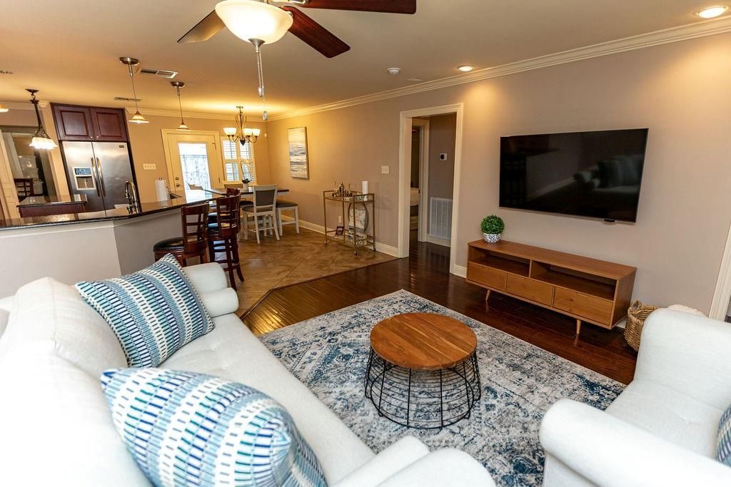 Short term furnished rental. 30 day minimum stay. Available April 1st. Welcome to our charming 3-bedroom, 2-bathroom house nestled in the vibrant Lakeview neighborhood of New Orleans. Whether you're visiting for a few months or longer, our fully furnished house offers a comfortable and convenient home away from home. * Spacious and beautifully decorated house with a bonus room for additional flexibility. * Three well-appointed bedrooms (2 king, 1 queen) with king memory foam nectar mattresses and memory foam coop pillows * Two modern bathrooms featuring all the essentials, including fresh towels and complimentary toiletries. * Fully equipped kitchen with appliances, cookware, and utensils -- everything you need to prepare and enjoy your meals * Open living and dining area for relaxation and enjoying meals together. * Bonus room that can be used as a home office, playroom, or additional sleeping space. Queen bed (not pictured) recently added to bonus room * Private backyard with a patio * Amenities include high-speed Wi-Fi, TV with streaming services and washer/dryer for added convenience.